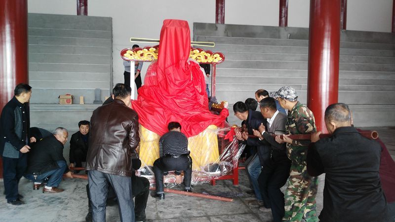 2016年3月17日,会长文礼、副会长有章、新洲、天才、绩刚、副秘书长承亚、章国、升章等一行10人驱车来到大冶市佛圣堂公司恭请先祖王祜(雕像),于18日早晨2点从大冶出发返回广水,8时到广水高速路口,顾问主任先锋、常务副会长承超等众亲敲鑼打鼓迎接先祖。摄影;章国